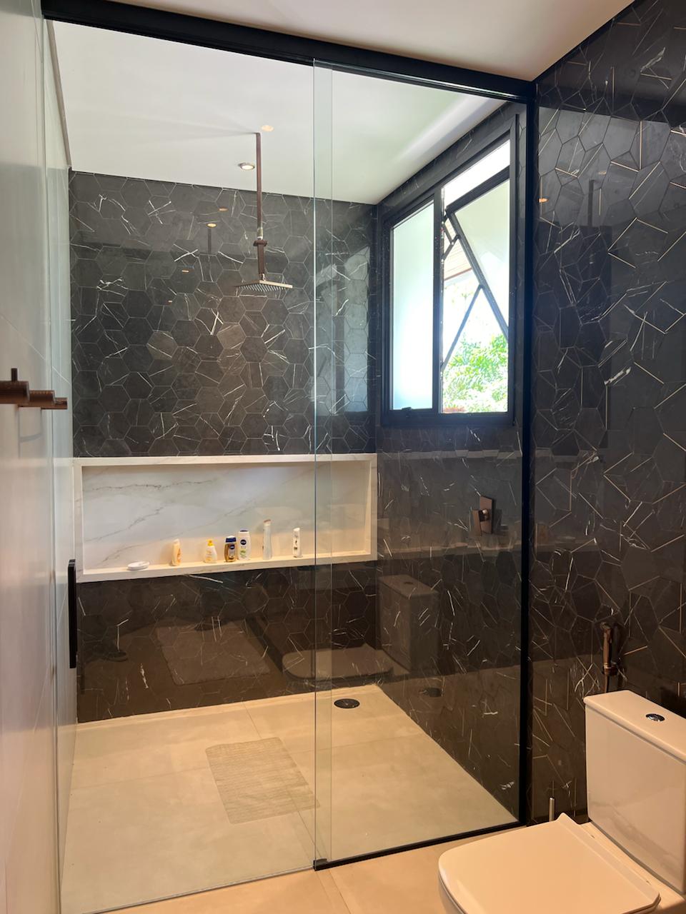 Temos box em vidro temperado para banheiro em diversos modelos e sob medida. Um encaixa perfeitamente ao design do banheiro.