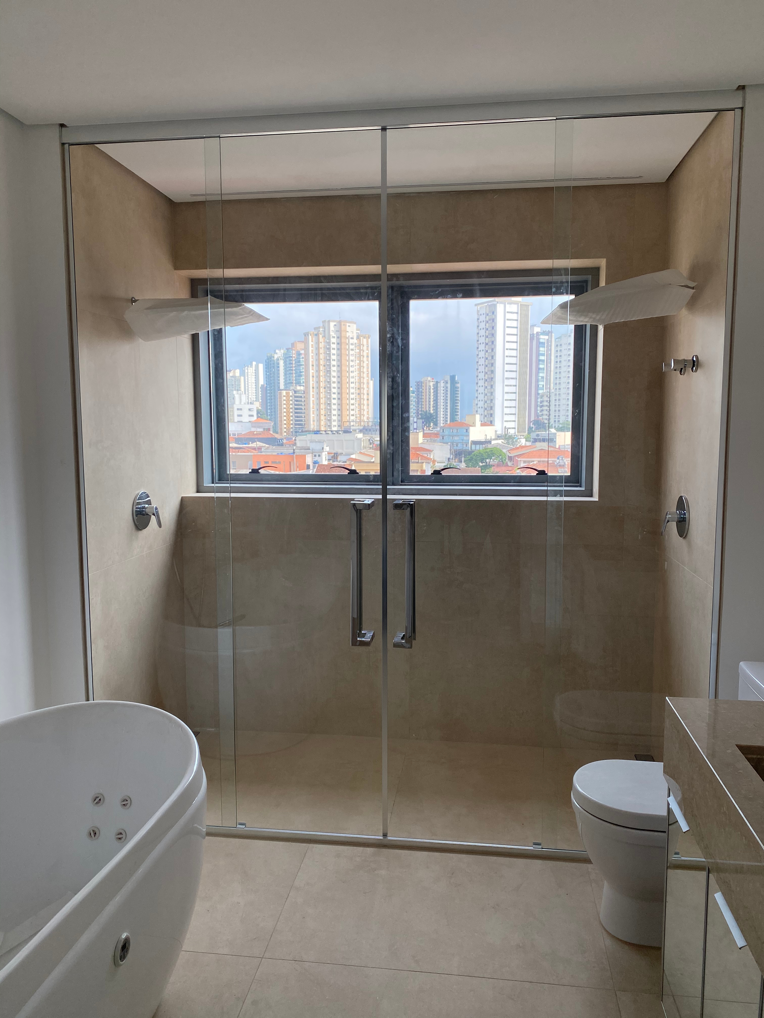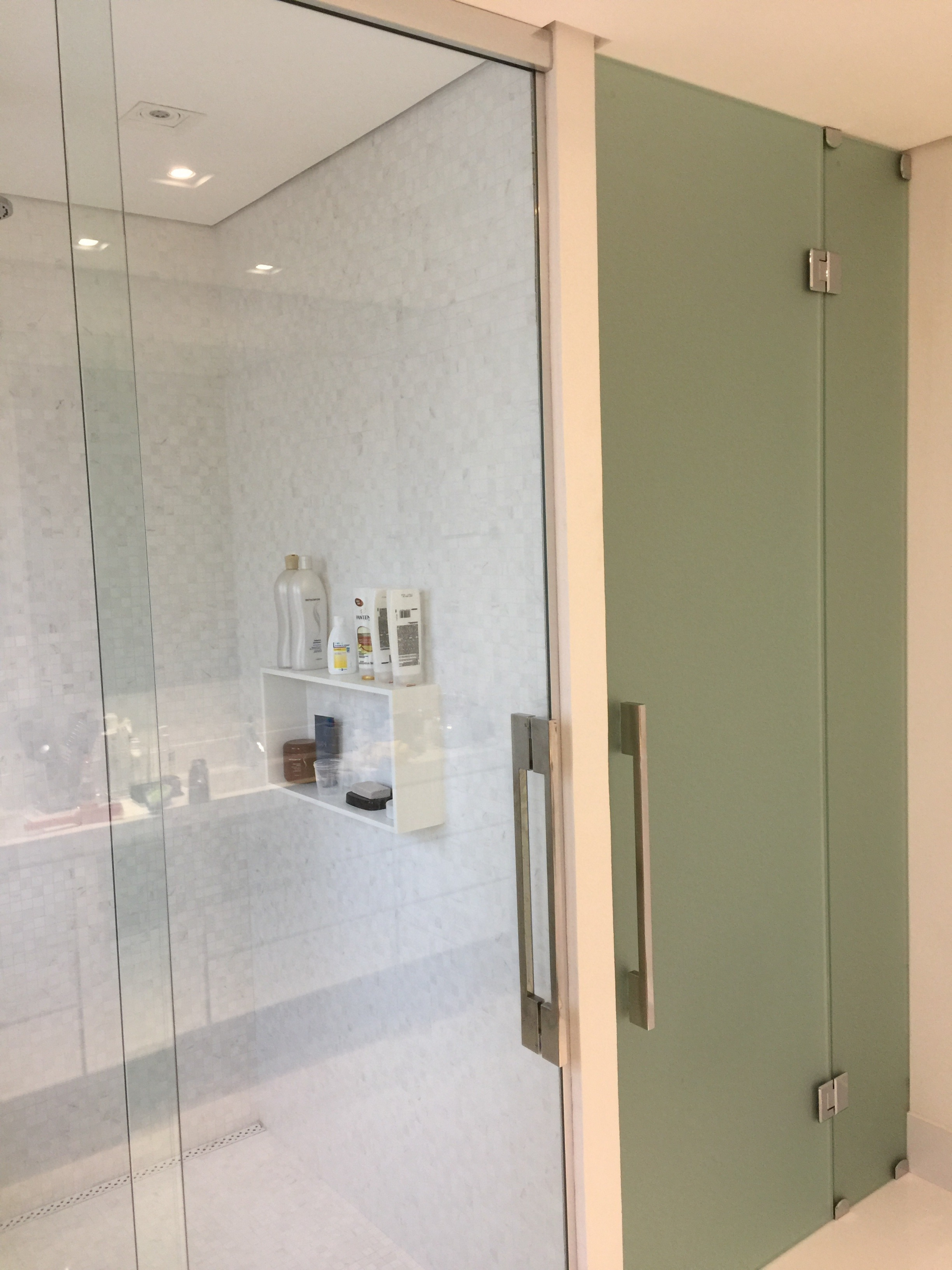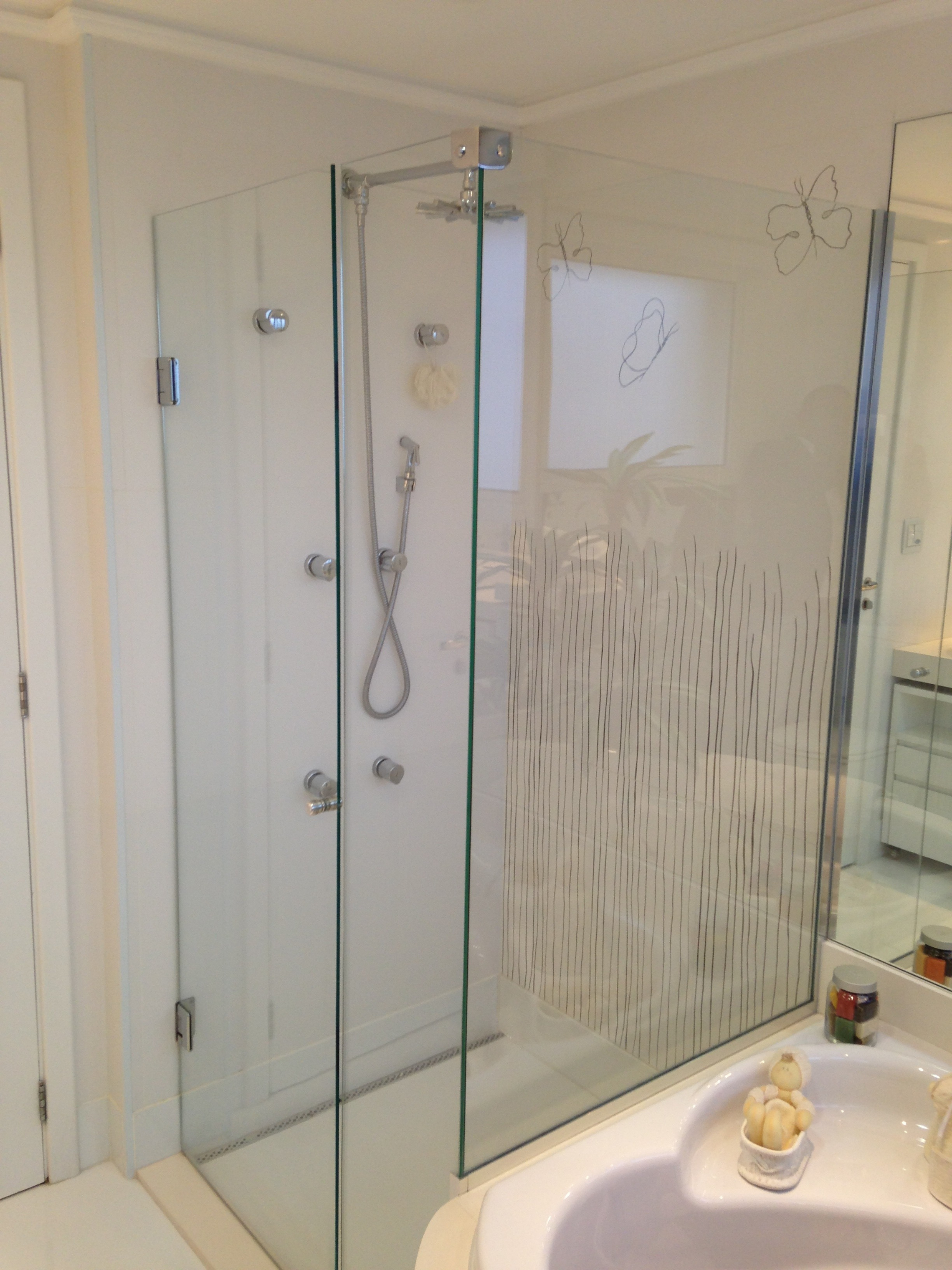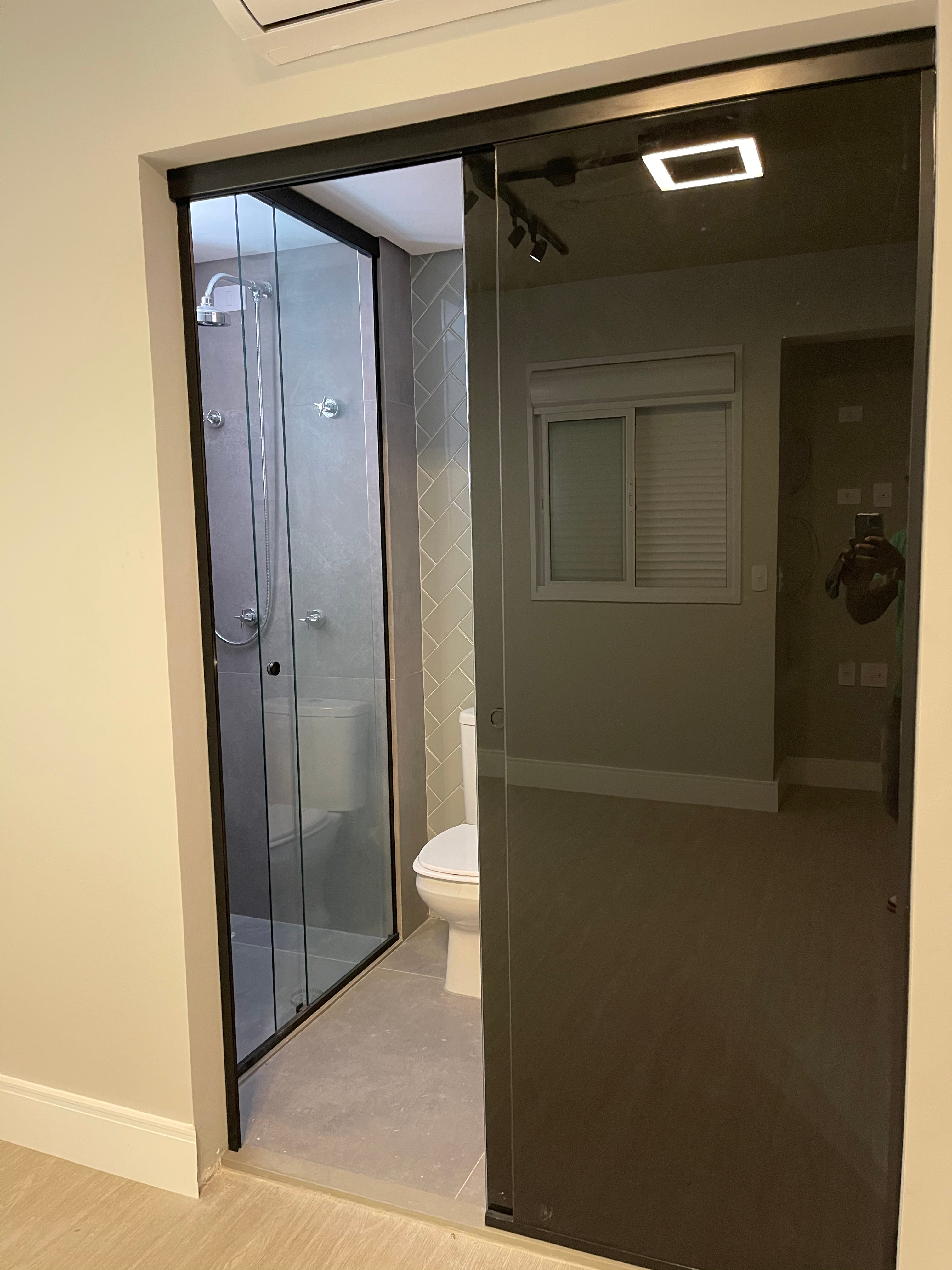 São diversos modelos de box: de correr (em quantas folhas o projeto necessitar), de abrir, com vidro colorido ou jateado.