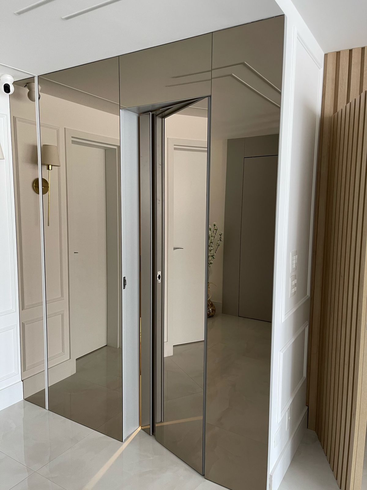 Por refletir, um espelho cria a ilusão de que o ambiente é maior, dando mais amplitude ao local.