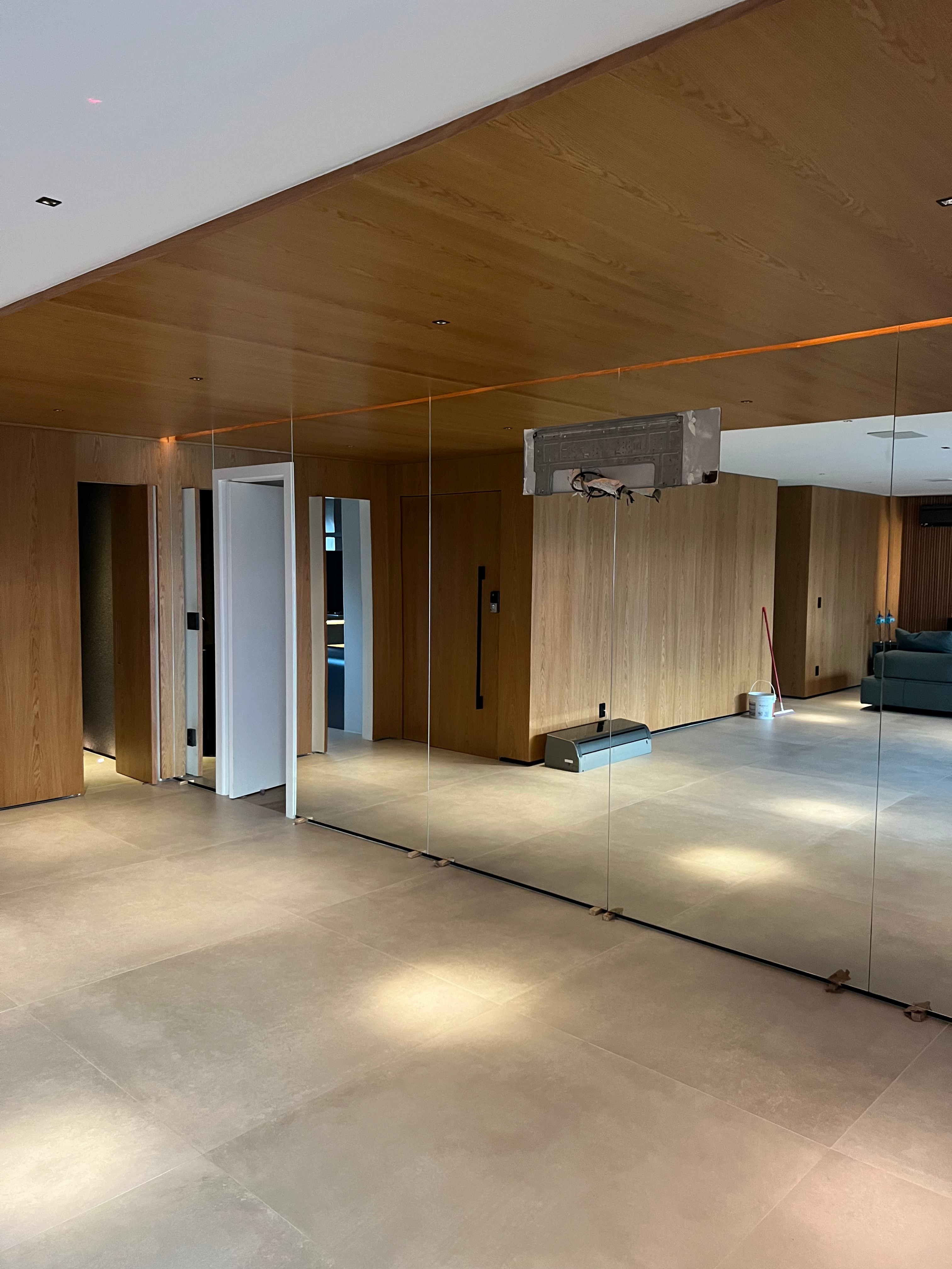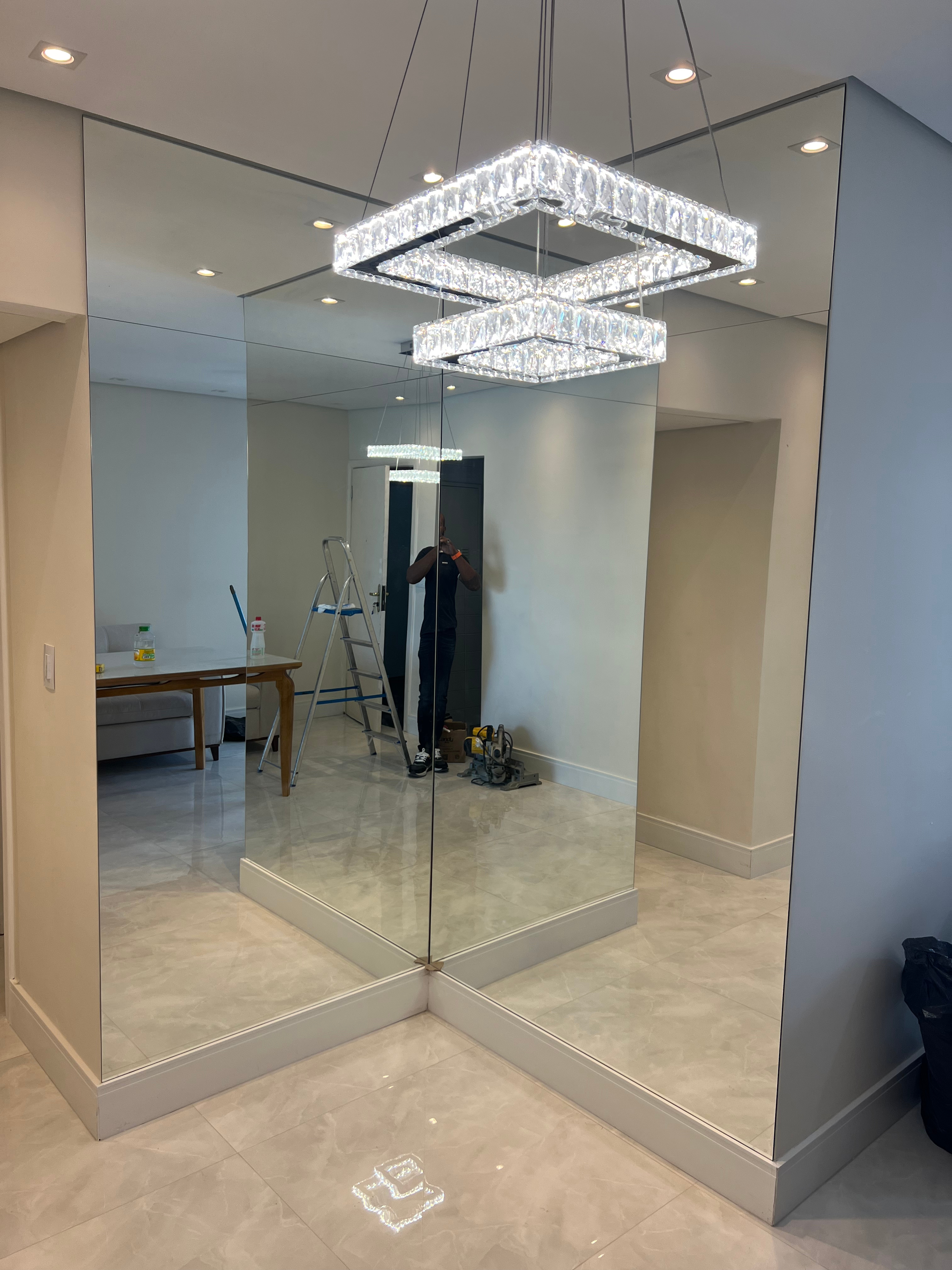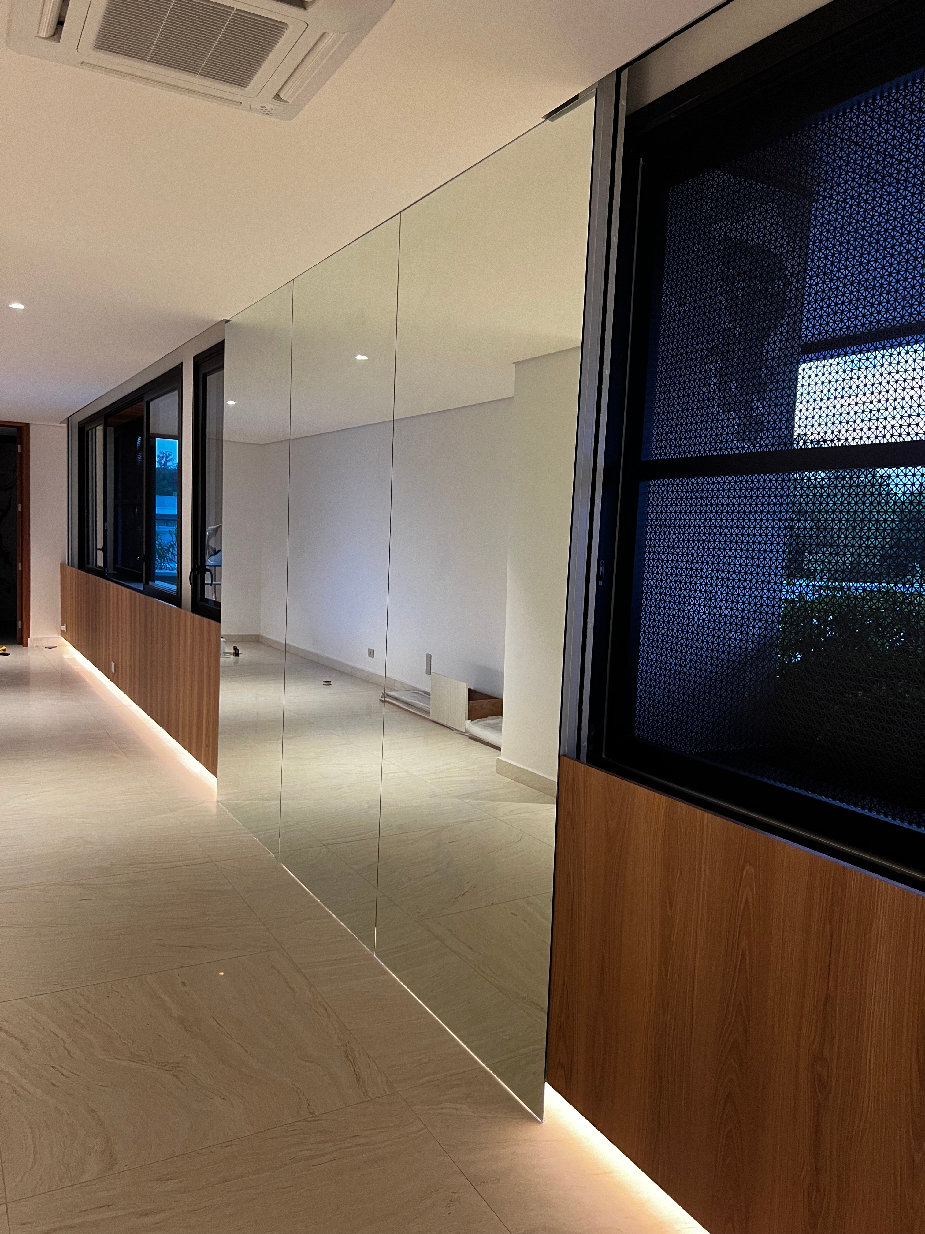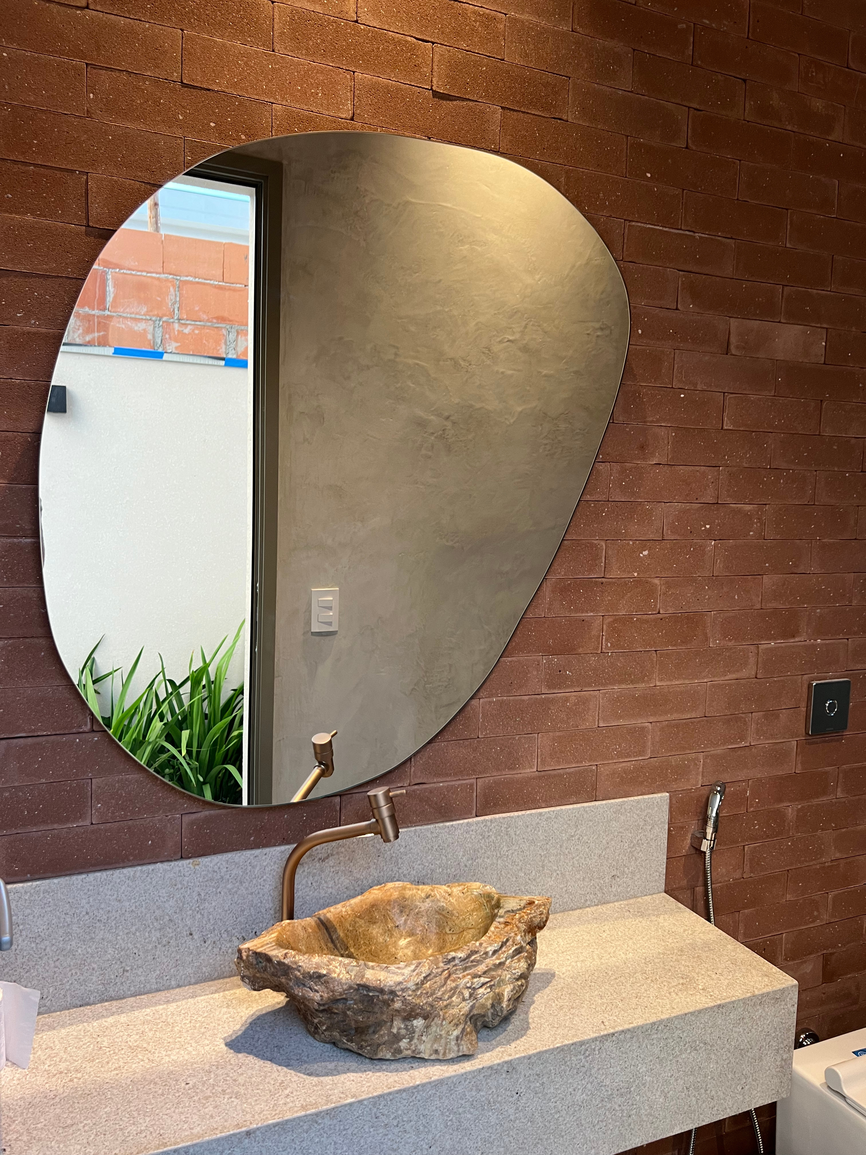 O espelho pode ser inteiriço, cortado na horizontal, vertical, instalado em módulos ou conforme o cliente desejar.