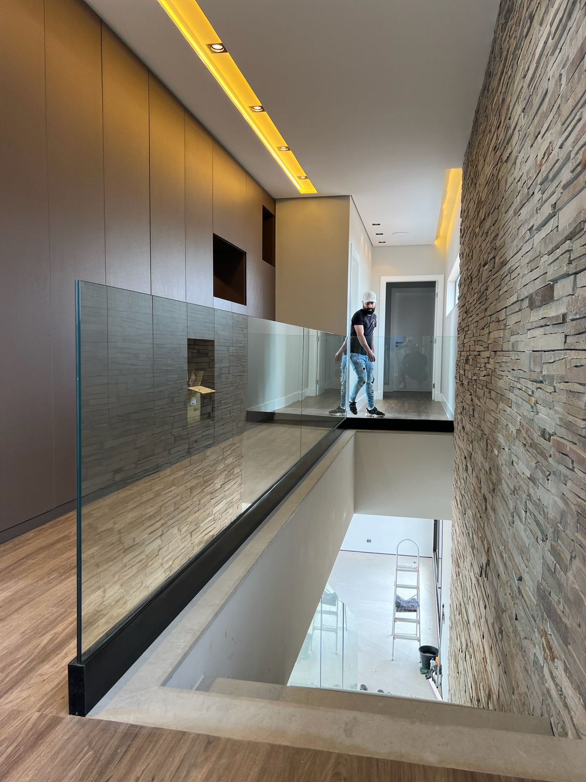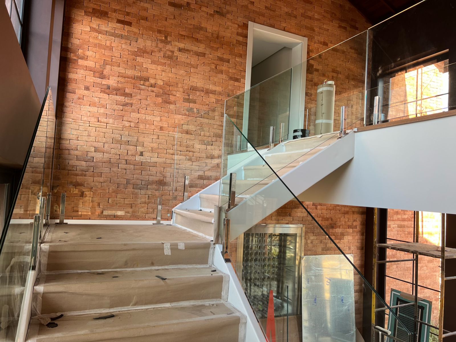 Também conhecido como parapeito, o guarda-corpo de vidro é essencial para a segurança de sacadas, lajes com beirais e escadarias.